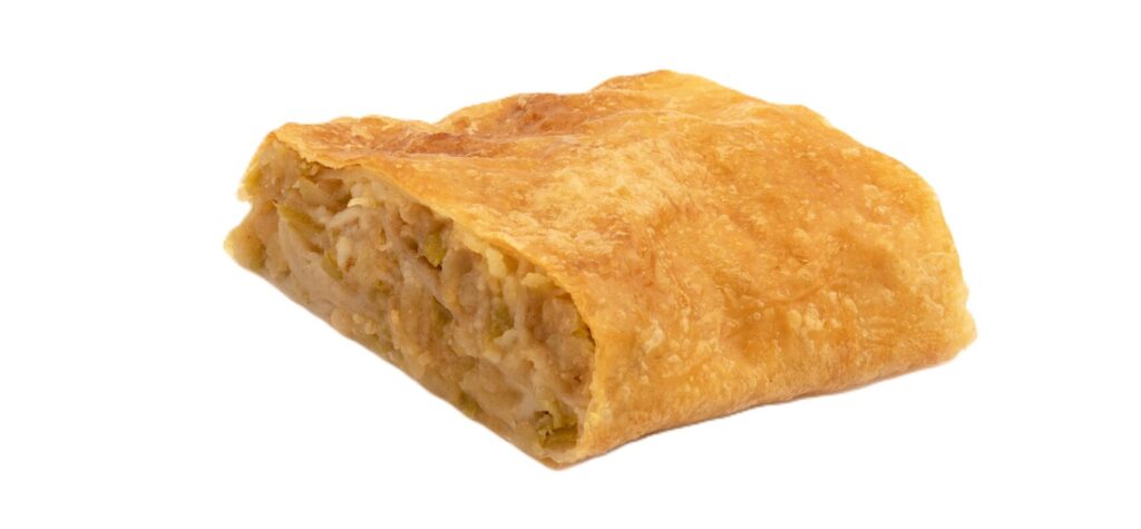 Hitro zamrznjeni izdelek iz vlečenega testa z nadevom, ki ga je treba termično obdelati po navodilih proizvajalca. / Pečeni izdelek iz vlečenega testa z nadevom, ki je primeren za takojšnje uživanje.